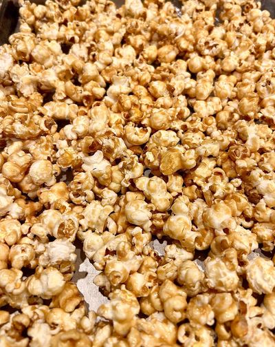 8) Quickly pour mixture on popcorn and stir to fully coat