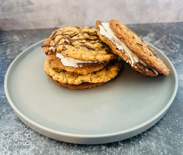 12) Melt extra chocolate chips and drizzle over the top of cookie sandwich.